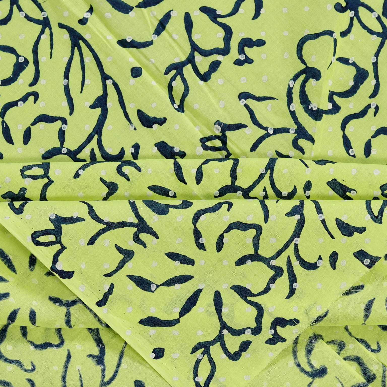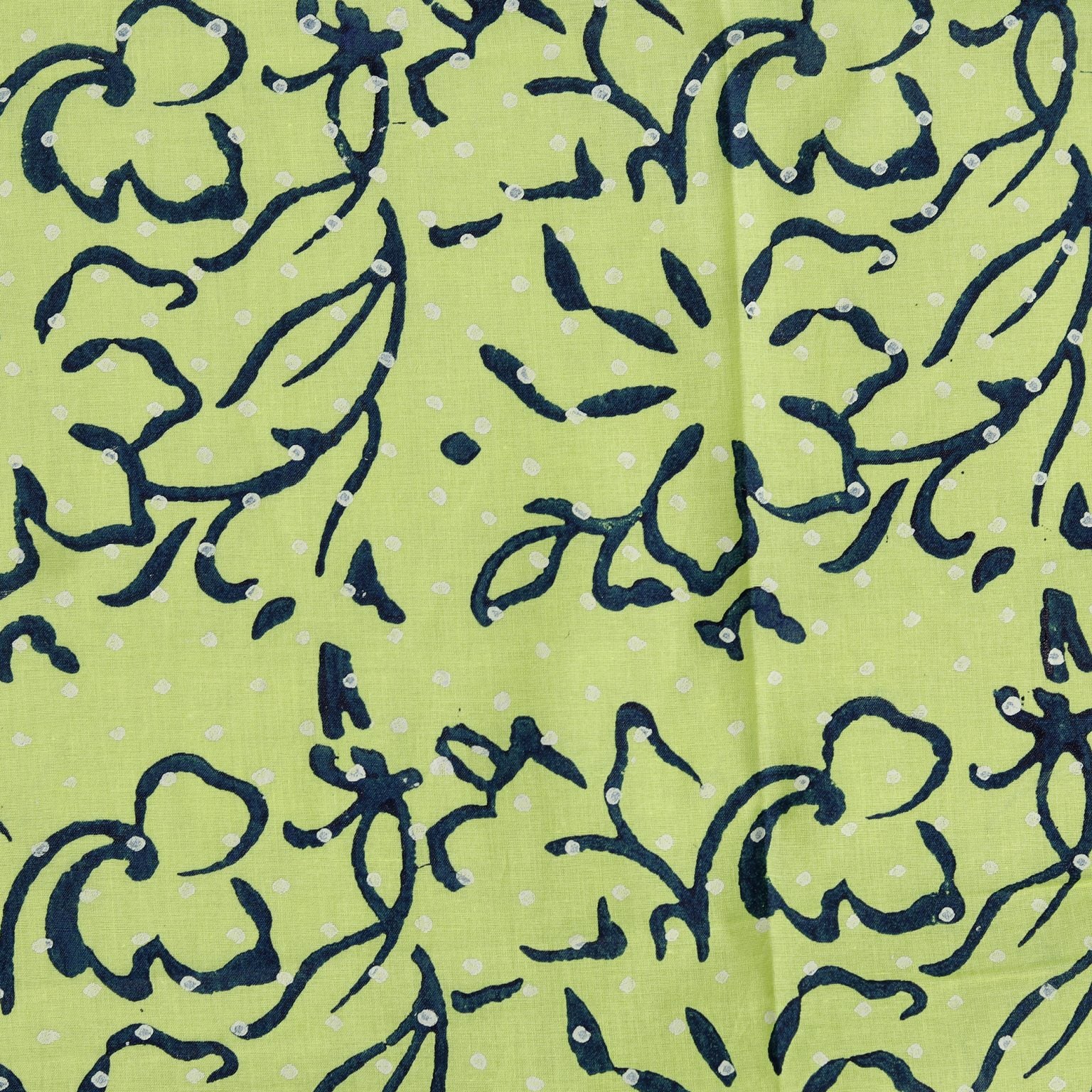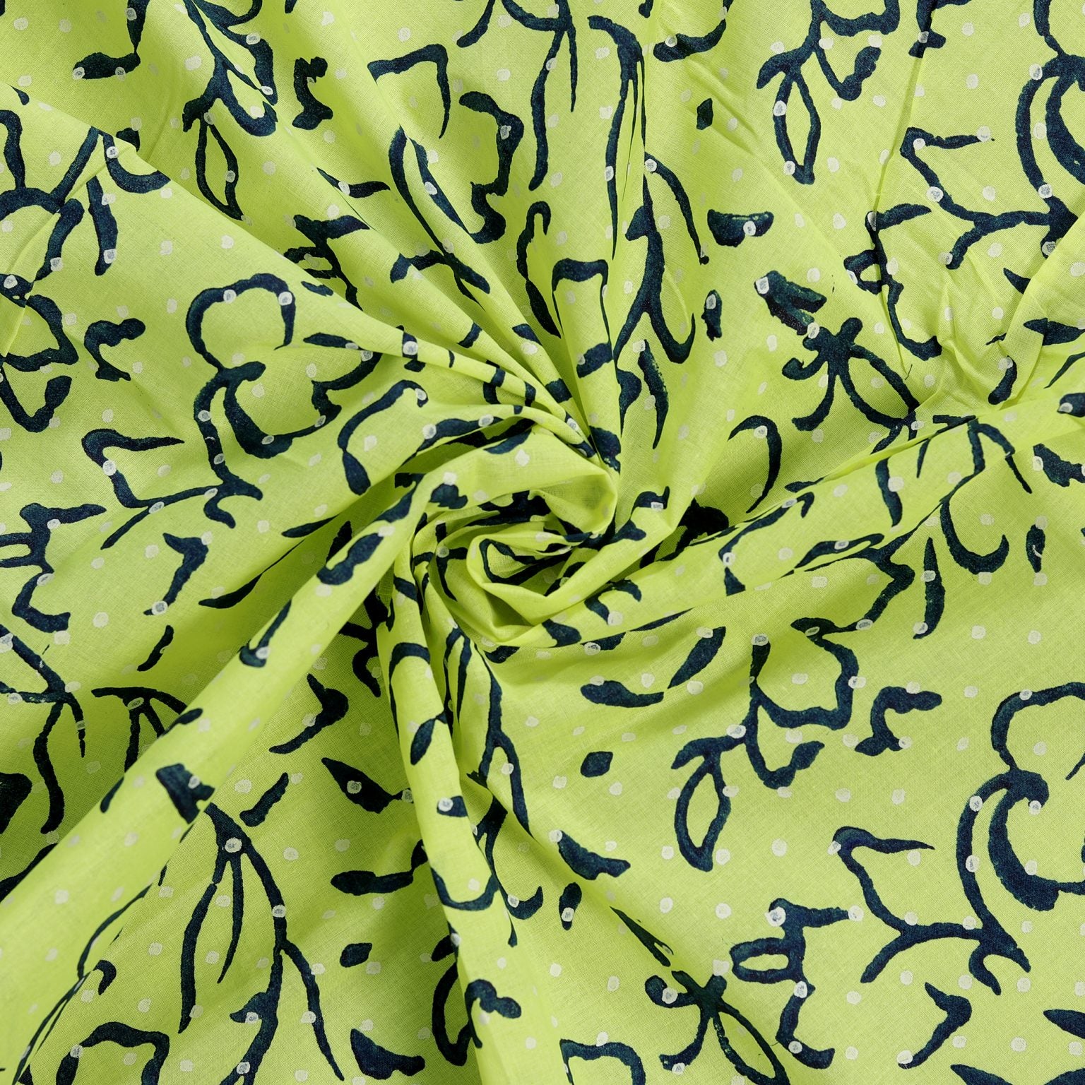 Contrasting colors, unconventional design, and aesthetic block print make this fabric, a great pick for a wide range of options. This is a green floral printed cotton fabric with intricate floral designs hand block printed all over it. Also, the fabric option allows you to blend more with the nature and feel the greenery around you.