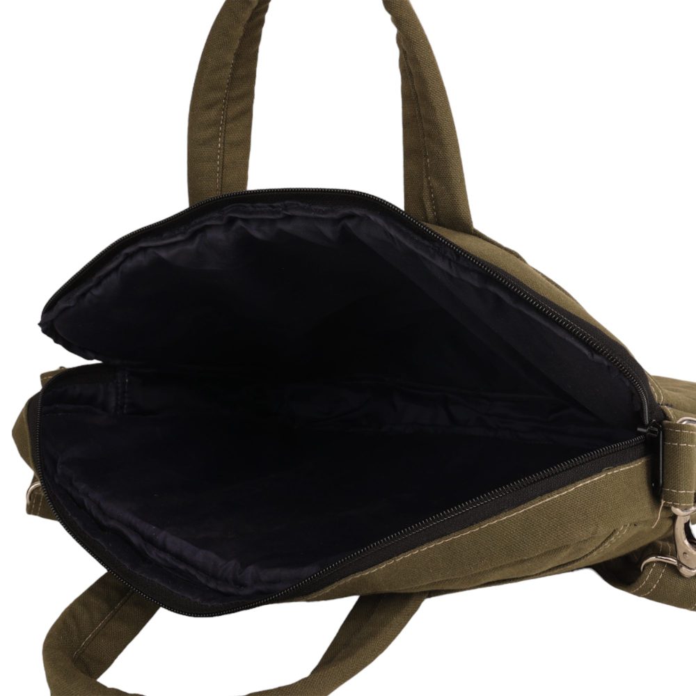 The compact dimensions offer ample space for your laptop and essentials, making it ideal for professionals, students, and travelers. The bag includes two inner compartments and one outer compartment for organized storage and is secured with a reliable zipper closure for added convenience and security. Its durable canvas construction and unique design make it a standout accessory for any occasion.