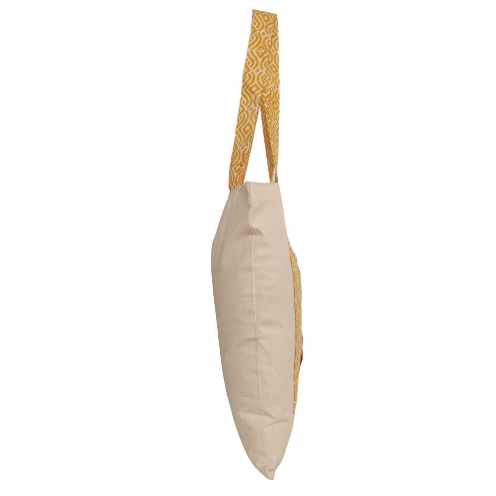 Each shopping tote bag is crafted by talented rural women artisans from Indha, using natural cotton fabric and eco-friendly materials. The artisans employ traditional block printing techniques and hand embroidery to create these unique designs, reflecting their rich cultural heritage and exceptional skills. By choosing this eco-friendly tote, you are supporting sustainable products and contributing to the livelihoods of rural women artisans.