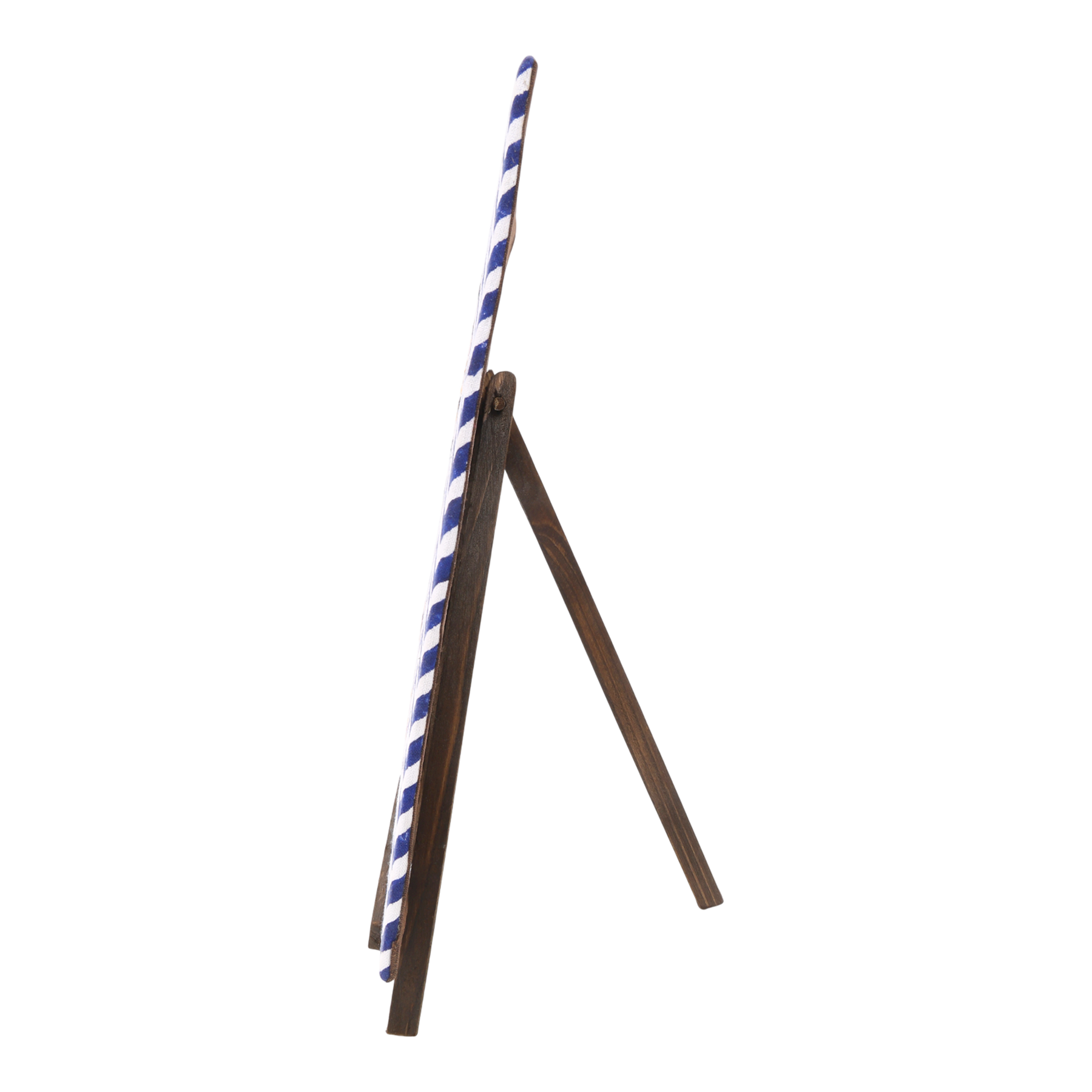 · Materials: Embroidered fabric panel, block-printed cotton frame, board backing; wooden easel