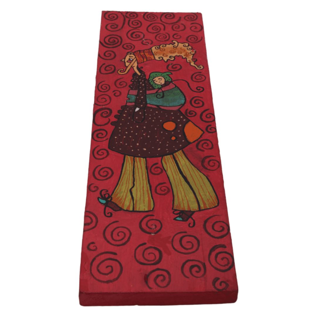 Indha wooden Hand Painted Wall Hanging Decor/Artwork presents a stunning Painting, a beautiful tribal mother & daughter art addition to your home décor. Crafted from recycled wood, this unique piece measures 12.0 x 3.5 x 0.5 inches and boasts a vibrant pink finish. Each stroke of the brush is a testament to the skill and dedication of the artisans who created it.