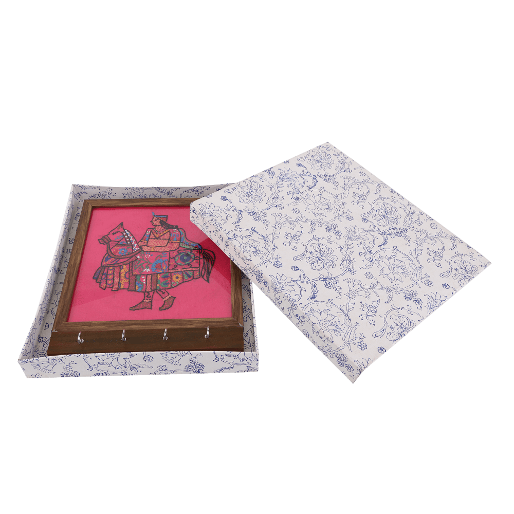 Material:- Dupion Silk & Pine Wood | Back Side Material: Vegan Leather