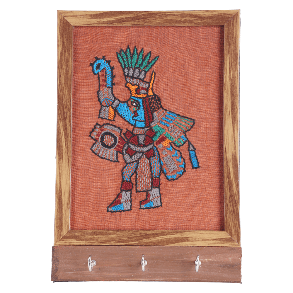 Keep your keys organized in style with the Unique Embroidered Wooden Key Holder for Wall by Indha. This exquisite key holder is a fusion of traditional craftsmanship and modern utility. Designed to add a touch of elegance to your everyday essentials. Handcrafted by skilled artisans using a combination of wood, Dupion silk, vegan leather, and metal, this key holder is not just a practical accessory but also a beautiful piece for your home decor or office decor.