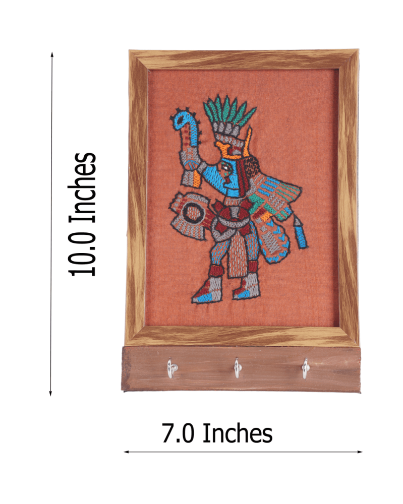 The intricate hand embroidery on the rust Dupion silk fabric showcases the artisans’ expertise, adding a rich, textured look to the key organizer. The three metal hooks provide ample space for organizing your keys. Making it a functional yet stylish addition to your entryway, office, or any space where you need quick access to your keys. The Indha Wooden Key Chain Holder compact size and beautiful design make it a perfect gift for anyone who appreciates handcrafted art and practical elegance.