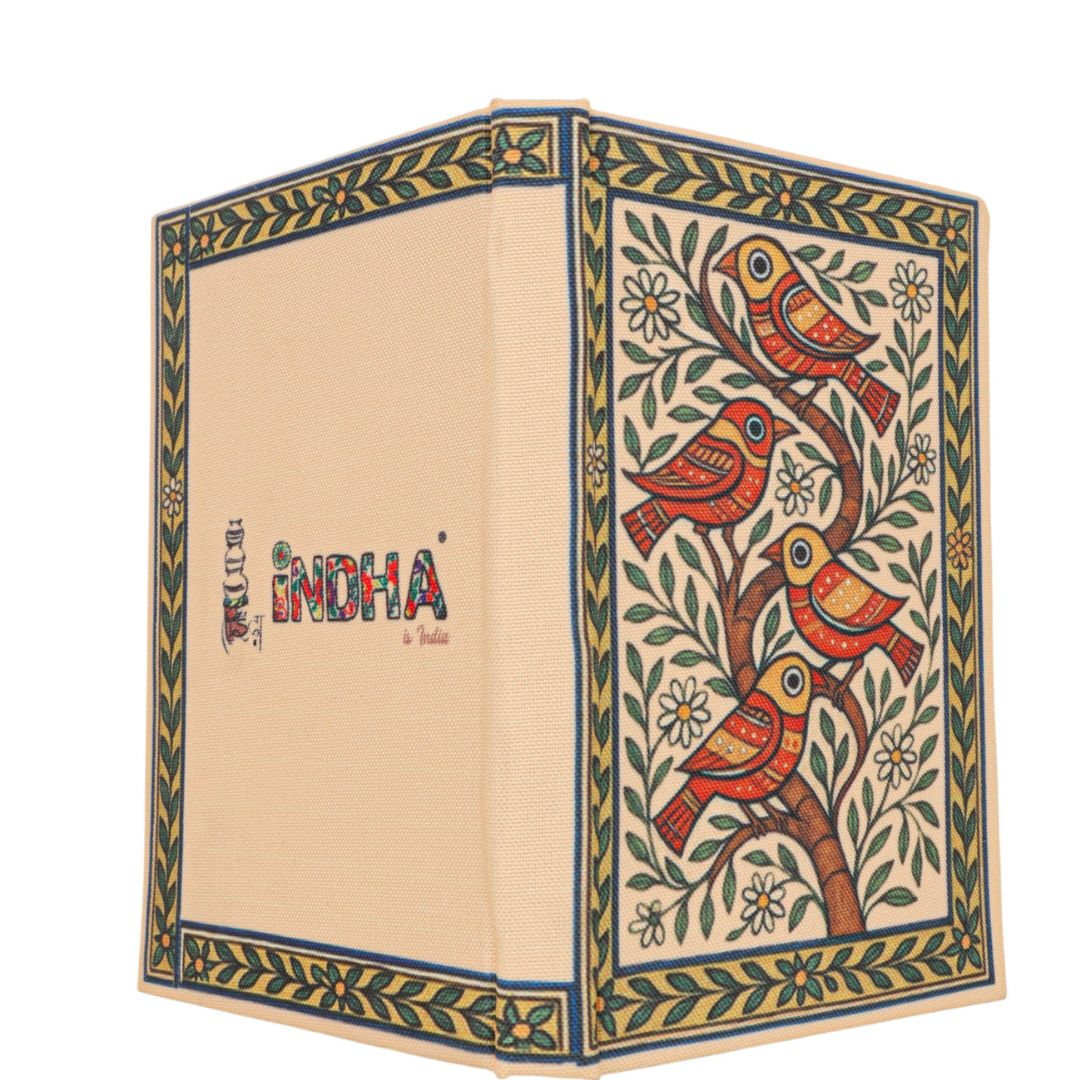 A compact, eco–friendly diary for everyday notes and quiet thoughts. The cover features a colourful birds-in-tree print on canvas, inspired by Indian folk art, while the inside pages are made from recycled white paper.