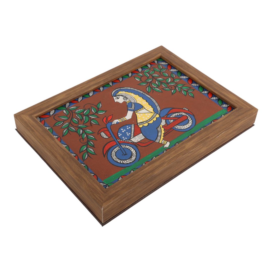 Indha Upcycled Wall Art (Hand-Painted on Repurposed Defective Tablet) | Wooden Framed Wall Décor with Vegan Leather Back Finish | Sustainable Gift