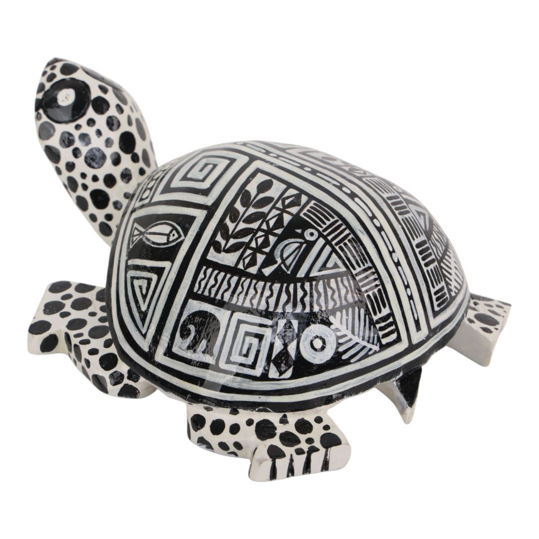 and painted with intricate folk-style patterns. Use it as a paperweight, a table décor accent, or a happy little companion on your work desk. Each piece is handmade, so every turtle has its own unique character.