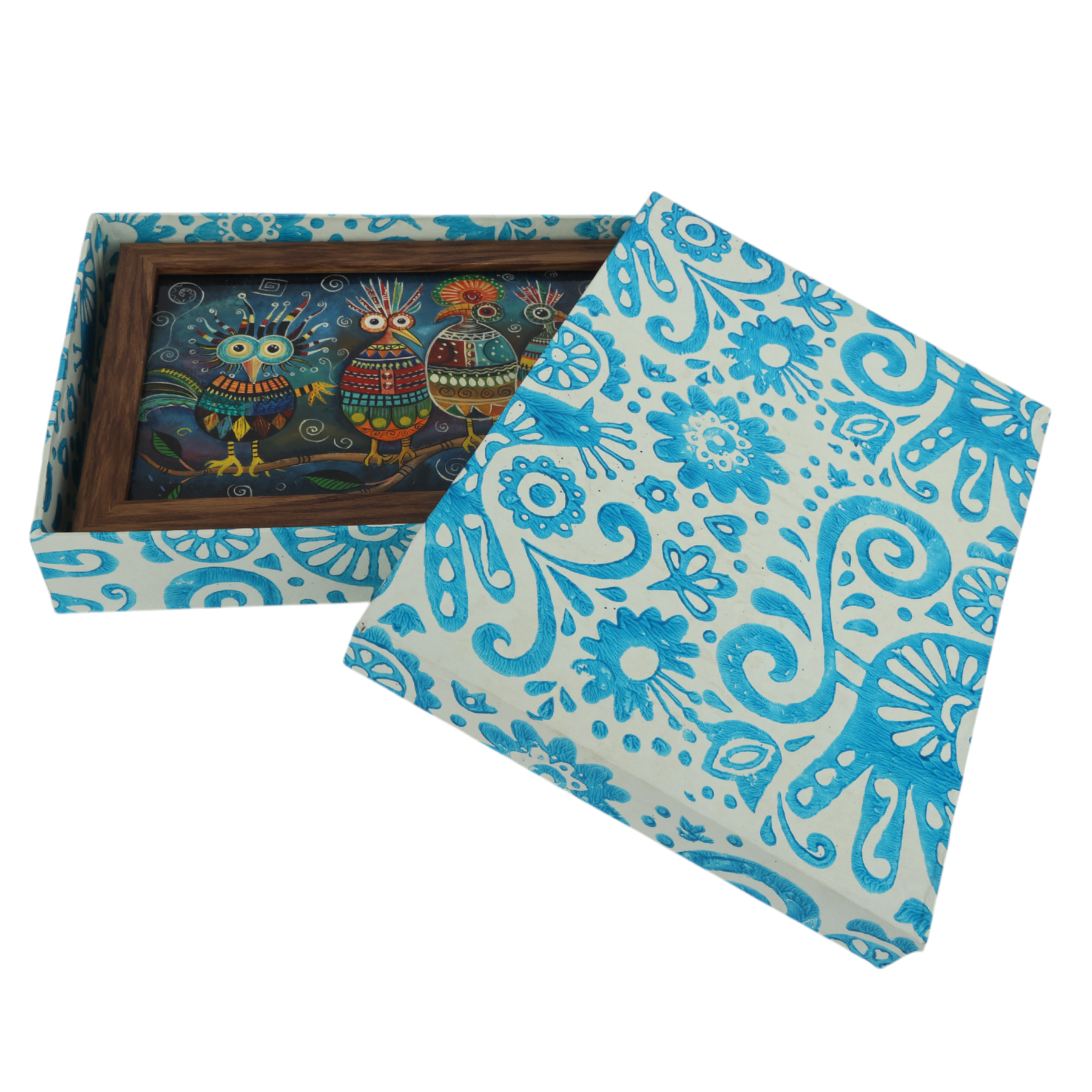 Turn waste into wonder with this cheerful handcrafted wall art décor, created on the screen of a discarded electronic tablet. Each bird is a burst of personality—playful, vibrant, and full of life. Using acrylic colours, artisans at Indha have brought to life four charming feathered friends, making it a perfect accent for children’s rooms, creative workspaces, or anyone who appreciates fun and sustainable design.