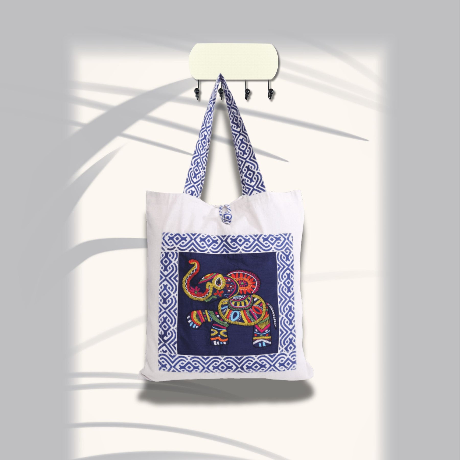 The elephant motif, symbolizing strength and wisdom, is beautifully embroidered on the front, making this Designer Elephant Motif Tote Bag a standout piece for any occasion. Whether you’re heading to work, shopping, or traveling, this spacious bag offers ample room for all your essentials. While the sturdy cotton fabric ensures durability. The cotton shopping bag’s vibrant colors and detailed patterns make it a versatile accessory that complements a variety of outfits, from casual to ethnic wear. It’s also an excellent choice for those who value eco-friendly and artisanal products, offering a stylish way to support traditional crafts and sustainable practices.