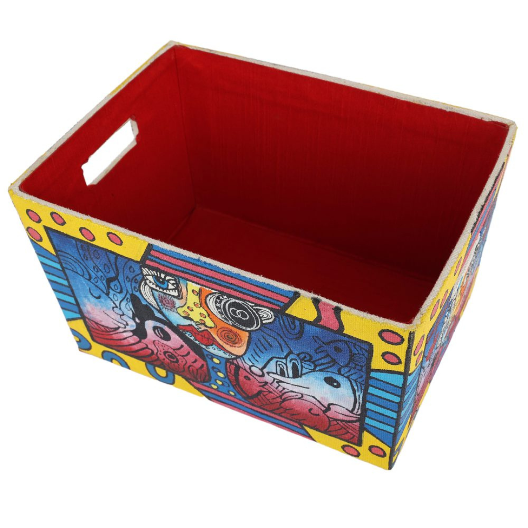 These baskets are made of Cardboard & Handpainted Canvas. Every piece is hand finished. Minor imperfections may sometimes occur due to the Hand painting natural form. These are considered part of the uniqueness and charm of the basket.