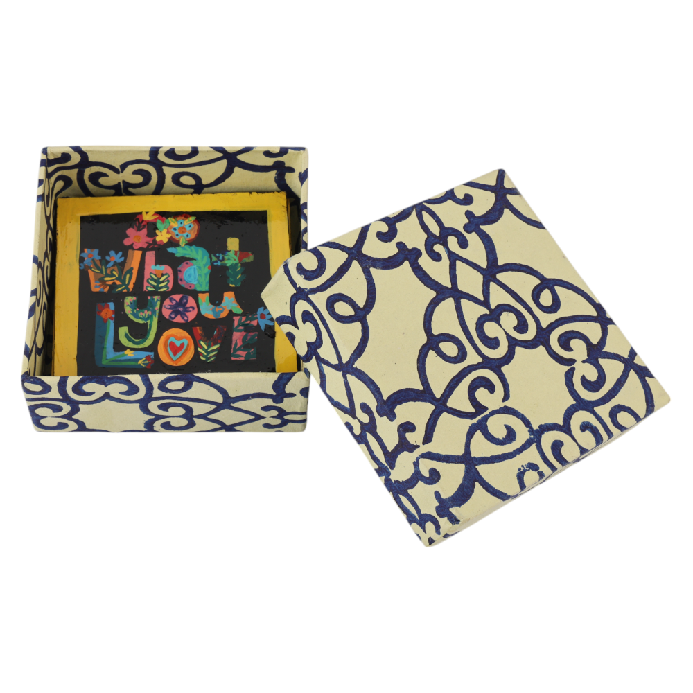 Let your table speak your vibe. This set of 6 hand-painted coasters by Indha features a heartfelt “Do What You Love” handwritten message, painted with care on repurposed wood. It’s a reminder to stay true to your passion—right from your morning coffee to your evening tea.