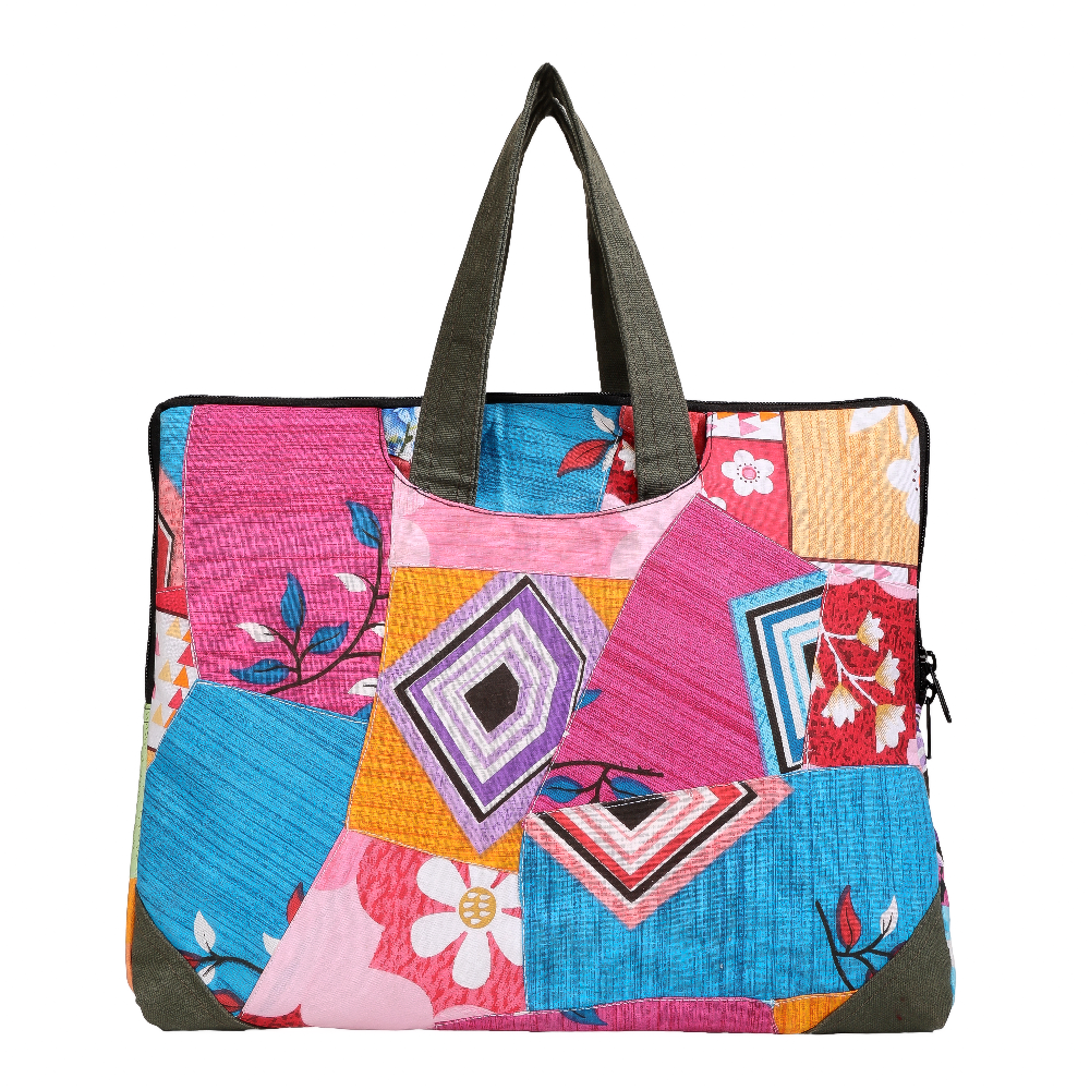 - Eco-Friendly & Unique: Handcrafted from upcycled cotton patchwork by Indha artisans—each sleeve is one-of-a-kind and sustainable.