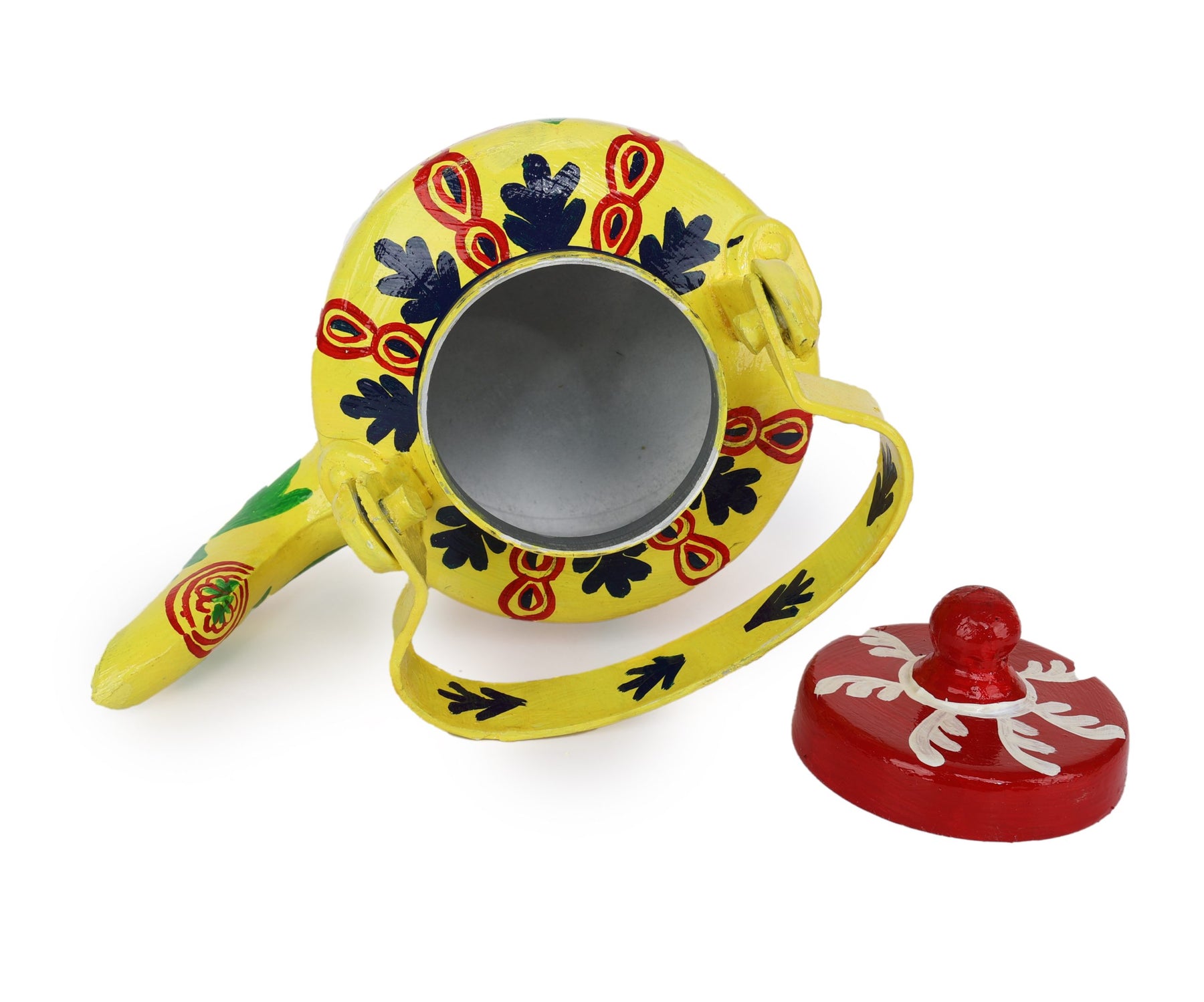 Are you also among those people, who love to entertain guests in your beautiful home. Like to serve tea or coffee to them and show them how beautifully you decorated your home. Make your home so aesthetically appealing that guests would not stop appreciating it. Always have unique home décors and home utility products. To make your home more decorative we bring for such a product from Indha that serves both the purpose of décor and utility. Here we have an aluminium decorative kettle from Indha. It is a yellow color hand painted tea kettle with wind chimes print and a vibrant red lid. This is a quite durable kettle with a sturdy handle and a long lasting body. Having a property to be corrosion resistant and easy to clean as well as maintain. It is going to grab every person’s attention, when used as a décor piece in your living room and even, when used for its utility of serving tea or coffee. Flaunt it in your tea party. Keep in your showcase or table top for attention. You can even give this fancy décor utility item as a gift to your friends and family for Diwali Gifting, Christmas gifting, Birthdays, Anniversaries & many such occasions. A purchase of yours would help in the livelihood of an Indha artisan.