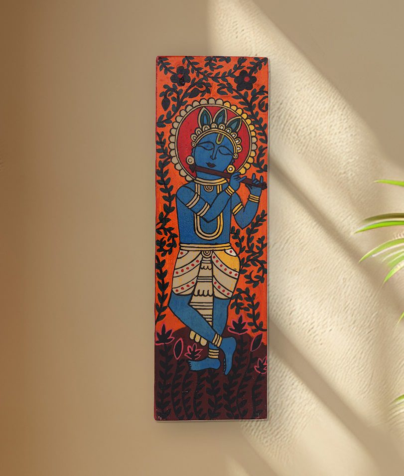 Indha's Hand-Painted Lord Krishna Wall Art - Capturing the Melody of the Flute | Lord Krishna Painting Wall Artwork hand painted Lord Krishna artwork| Wall hanging| Unique Wall hanging artwork|